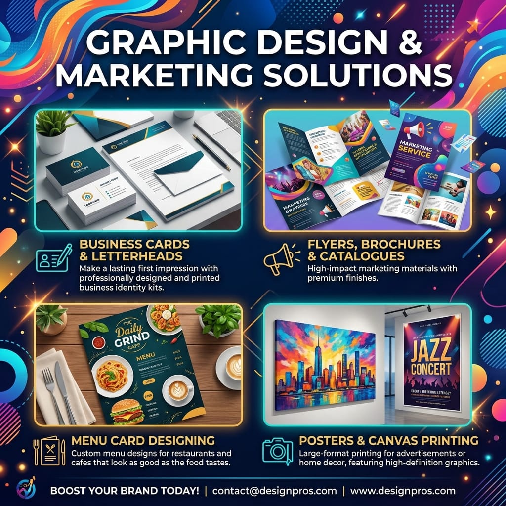Business Cards & Letterheads: Make a lasting first impression with professionally designed and printed business identity kits.
